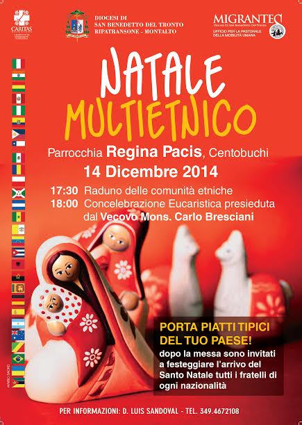 come avrete notato nel sussidio diocesano dell’Avvento anche quest’anno l’Ufficio Migrantes, in collaborazione con la Caritas Diocesana, ha organizzato la celebrazione del “Natale Multietnico”. Tale iniziativa è nata con la finalità di ravvivare le radici cristiane dei tanti immigrati cattolici presenti nel nostro territorio ed è un momento di condivisione e di fratellanza che li sostiene nella fede e li aiuta a sentirsi parte integrante della nostra comunità diocesana.