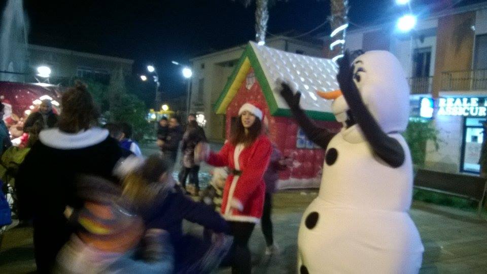 La piazza gremita si è vestita di un’aria quasi magica….un trenino correva su e giù carico di bimbi festanti che salutavano genitori e passanti,una lunga fila davanti agli stands di zucchero filato e pop-corn,spettacoli di magia, bolle di sapone e ancor gare fra piccoli, baby dance e foto ricordo con alcuni personaggi del noto cartone FROZEN come OLAF che giravano per la piazza tra l’allegria di tutti.
