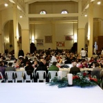 Ad augurare il buon appetito anche il sindaco Gaspari e presente anche il Pastore Angelo della chiesa Evangelica con un gruppo di ospiti, che ha augurato a tutti un vero Natale di amore. Don Gianni che ha ringraziato tutti, ha poi invitato tutti a momento di preghiera in silenzio, ognuno secondo la propria sensibilità, e così è iniziato il pranzo con l’ingresso dei camerieri attenti e impeccabili. Durante il pranzo è passato per un saluto anche il vescovo Carlo che ha potuto osservare tutte le attività che rendono possibile la realizzazione del pranzo dalla cucina ai lavapiatti, dal servizio alla preparazione cestini con ciò che avanza secondo le quantità preparate.