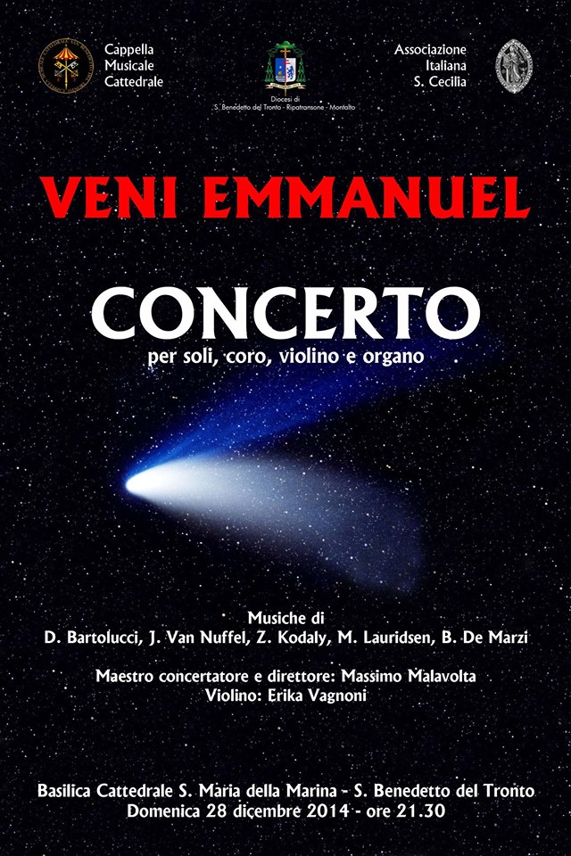 Domenica 28 Dicembre alle ore 21.30 presso la Cattedrale Basilica S. Maria della Marina a S. Benedetto del Tronto.