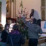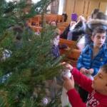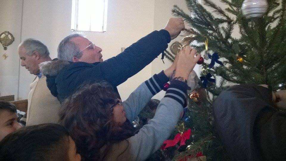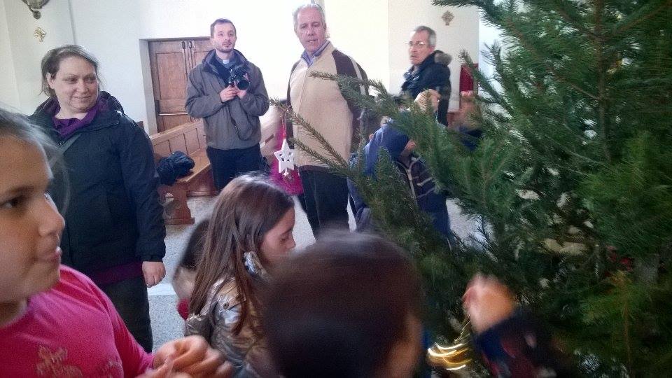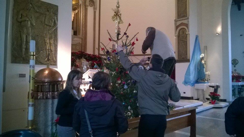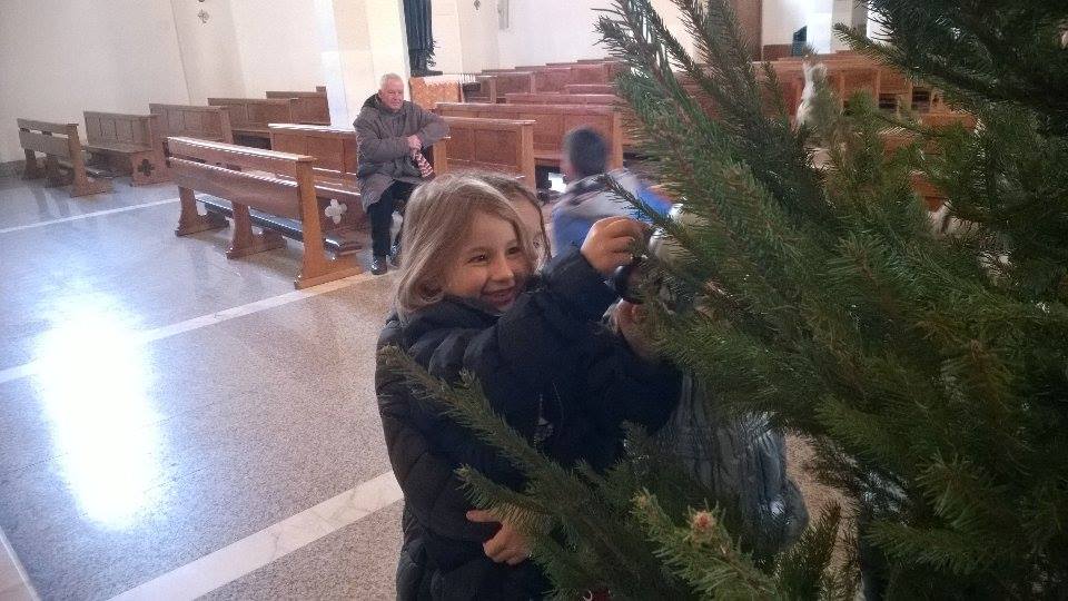 Ognuno ha portato un addobbo da casa e aiutati dagli educatori dell’acr e degli scouts hanno abbellito l’abete sotto l’attento sguardo di don Lucasz
