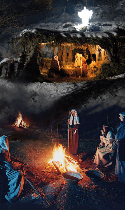 Suggestiava la location del Centro Storico, trasformata per un giorno, in una Betlemme dell’anno zero; Le scene all’aperto presentano momenti della vita quotidiana della Betlemme nell’anno di nascita di Gesù, la scena del mercato con animali ed altri prodotti della terra; la formazione deiCenturioni a piedi ed a cavallo che vigilano gli spazi per garantire il lavoro dei mercanti e dei compratori. Inoltre, le botteghe e scene familiari del tempo sono riprodotte fedelmente e con la massima cura dei dettagli , dei costumi e degli attrezzi dell’epoca. Le scene sacre , danno un senso religioso e mistico ai quadri che man mano si presentano al visitatore fino ad arrivare alla scena Madre della NATIVITA’ che dislocata sulla parete di una collinetta, circondata dai fuochi dei pastori e presenziata dagli Angeli, mostra la grandiosità della Capanna dove sono presenti la Madonna, S.Giuseppe, il Bambinello, il bue, l’asinello ed i Re Magi che si affacciano ad adorare il Messia.