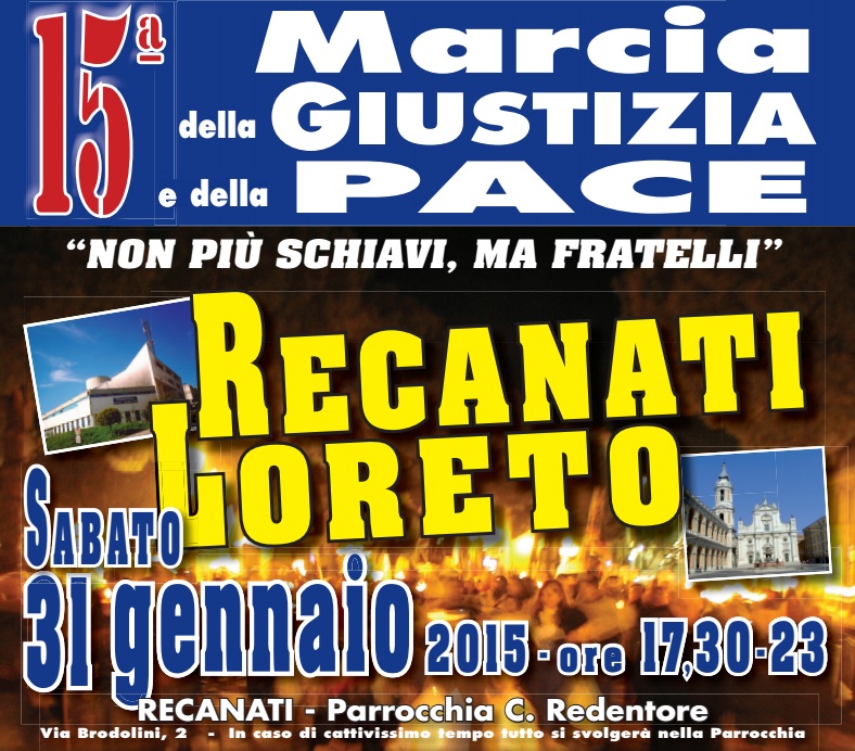 REGIONE MARCHE – Il responsabile della Pastorale del Lavoro diocesana Franco Veccia comunica: “Sabato 31 gennaio si svolgerà la 15^ Marcia della Giustizia e della Pace da Recanati a Loreto.
