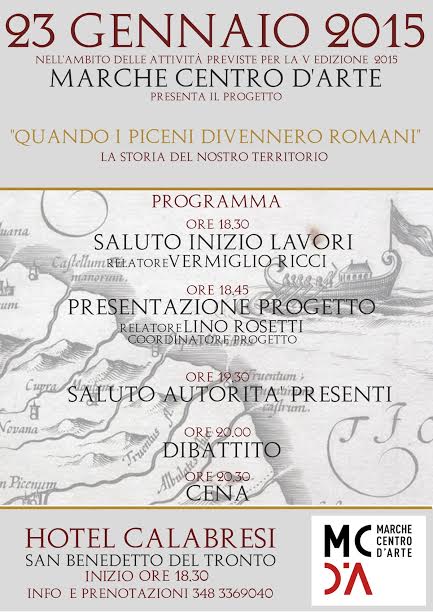 Il progetto sarà presentato venerdì 23 gennaio 2015 presso l’Hotel Calabresi di San Benedetto del Tronto con il seguente programma: