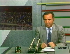Nella foto, Sabatino D’Angelo in collegamento per “TG1 Mercoledì Sport” per il commento di Sambenedettese-Milan 0-3, partita di Coppa Italia svoltasi al “Riviera delle Palme” il 13 settembre 1988