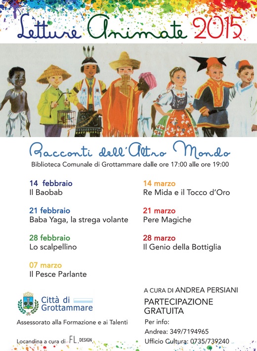 “Racconti dell’altro mondo” è il titolo della rassegna di lettura e animazione per bambini che quest’anno intende “favorire l’educazione interculturale e l’integrazione sociale , facendo entrare in contatto i fanciulli con culture e tradizioni diverse dalle proprie – spiega il curatore e tradizionale animatore della rassegna Andrea Persiani – per combattere i pregiudizi e gli atteggiamenti xenofobi nei confronti degli stranieri presenti in Italia. Ogni racconto è ambientato in diverse aree geografiche lontane dall’Italia ma con le quali i bambini, e non solo, entrano in contatto per effetto dei recenti mutamenti socio-economici: Africa, Medio Oriente, Cina, Russia, India e Giappone”.