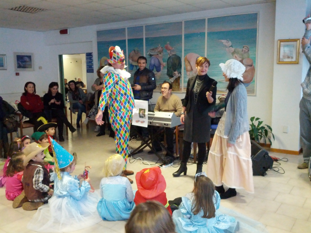 SAN BENEDETTO DEL TRONTO – Si è tenuta ieri, al centro “Primavera” una bellissima festa di Carnevale organizzata in occasione della puntata di “Favole a merenda”. I nonnini del Centro, insieme ai bambini, hanno assistito ad una divertente lettura animata in maschera con gli ospiti speciali “Arlecchino e Colombina innamorati”.Tanto divertimento tra scenette e balli, il tutto accompagnato da una coinvolgente musica dal vivo curata dall’insegnante di musica Marco Re.