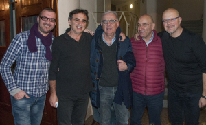 Da sinistra il Vice Presidente dell’Associazione Lido Degli Aranci Floriano Tavoletti, Valter Assenti, Gene Gnocchi, il Cav. Tullio Luciani e Angelo Carestia.