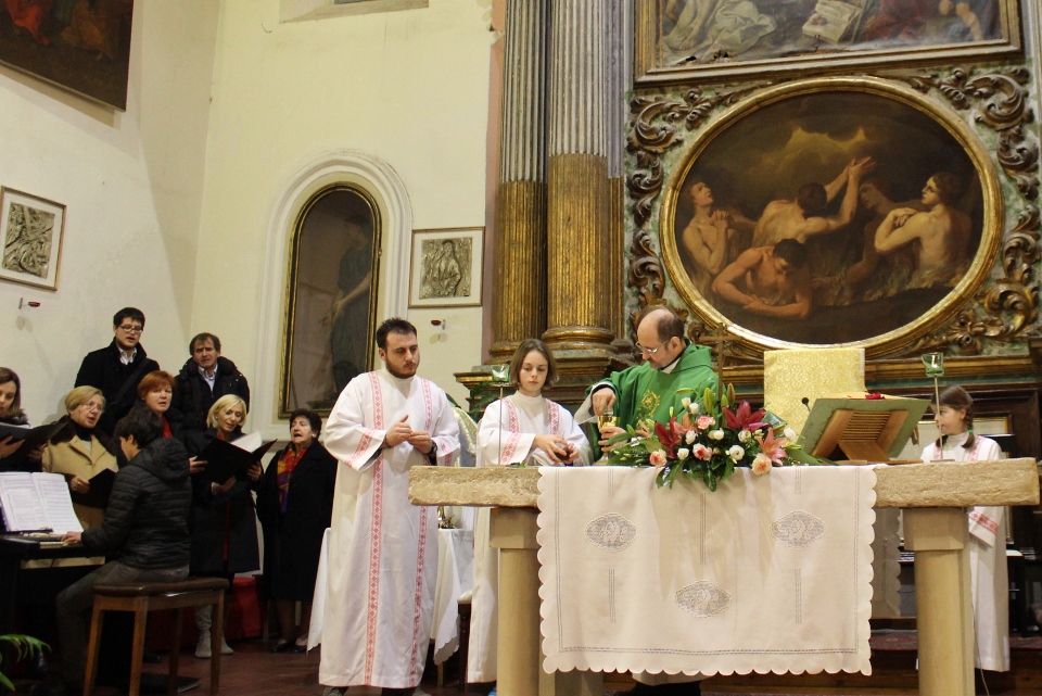 Don Giorgio ha ricordato il nostro Vescovo Carlo con noi unito spiritualmente, fisicamente a Roma per il Concistoro.
