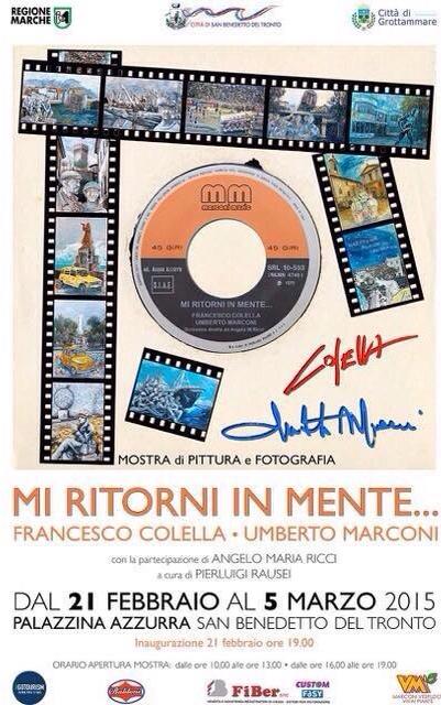Sarà possibile ammirare l’esposizione “mi ritorni in mente” a cura di Pierluigi Rausei e con il patrocinio della regione Marche e dei comuni di San benedetto del Tronto e Grottammare presso la Palazzina azzurra di San benedetto del Tronto da domani 21 febbraio al 5 marzo tutti i giorni dalle ore 10.00 alle .13.00 e dalle 16.00 alle 19.00.