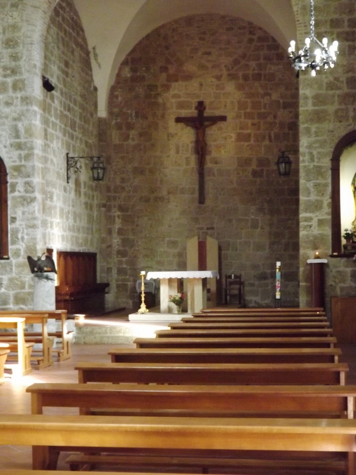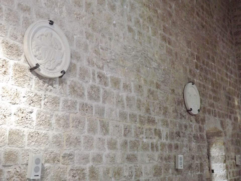 Il diacono Galliano, che ha effettuato varie ricerche al fine di restaurare l’assetto originario del complesso, sotto il vincolo della tutela di quelli che sono beni non solo sacri ma anche culturali e ambientali, ci ha illustrato i lavori di ripristino degli ultimi anni. Dal 2008, anno in cui l’abbazia è stata riconsacrata, le modifiche hanno interessato sostanzialmente il presbiterio, con la sostituzione dell’altare, della sedia abbaziale e dell’ambone, fino ad arrivare ai lavori più recenti, in particolare l’importantissimo ritrovamento di un antico fonte battesimo che era andato perduto (risalente intorno all’anno 1000 e forse di proprietà cardinalizia) e il ripristino di quattro medaglioni, finora messi da parte e oggi invece appesi alle parete laterali, raffiguranti i quattro evangelisti con i loro simboli, commissionati dal vescovo ad uno scultore di Isernia per il giubileo del 2000.