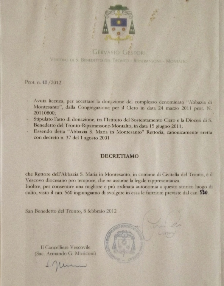 DIOCESI – Ancora oggi l’abbazia di Santa Maria in Montesanto è uno tra i complessi religiosi di maggiore suggestione del territorio teramano, una realtà monumentale immersa in un silenzio fatto di memoria, spiritualità e natura.