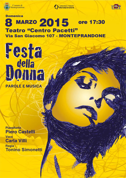 MONTEPRANDONE – Domenica 8 marzo 2015, in occasione della Festa della Donna, l’Auditorium del “Centro Pacetti” di Monteprandone ospita uno spettacolo di poesia e teatro per la regia di Tonino Simonetti dedicato all’universo femminile, ai suoi sogni, ai suoi bisogni, al rapporto con il genere maschile e con il mondo.