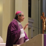 “Lasciamoci guidare da questi due personaggi nella nostra riflessione – ha detto il Vescovo Bresciani – Naamàn, il lebbroso, che, come tutti noi di fronte alla malattia, desiderava la guarigione, viene a sapere, attraverso le vie che solo il Signore conosce, che c’è un profeta in Israele e pensa che se va da quel profeta forse può ottenere da Dio la guarigione“. Naamàn pensa di dover “acquistare” da Dio il dono della salute con la ricchezza che egli possiede, ma Dio gli dice, attraverso il profeta, che per guarire deve fare un gesto estremamente semplice: immergersi nelle acque del fiume Giordano. Che cosa ci insegna Dio? Ci insegna che ciò che conta è l’umiltà; ci dice “Sii umile“, ci dice di non guardare alle cose esteriori, basta anche un piccolo gesto, perché ciò che conta è come esso viene fatto:”Di fronte a Dio come ci troviamo? Possiamo acquistare qualcosa da Lui? Qualunque cosa noi potessimo dare in cambio, non basterebbe mai. Dio, da noi, vuole che riconosciamo la Sua grandezza, che riconosciamo che Lui ci salva indipendentemente dai nostri meriti. Il Signore ci salva nonostante il nostro peccato, se noi lo riconosciamo. Ecco il cammino di conversione: riconoscere che Dio ci salva gratuitamente, attraverso la nostra disponibilità, la nostra apertura e la nostra umiltà. Non ci salva perché siamo figli di Dio ma perché riconosciamo Lui come Dio“.
