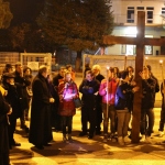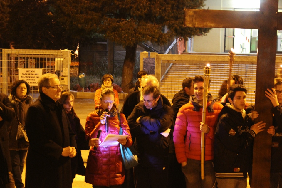 Un seme di speranza anche in chi la malattia e le difficoltà della vita ha messo a dura prova. Quella fiducia nell’educare, nelle nuove generazioni, che il sostare della processione davanti la scuola media Cappella ha voluto sottolineare. La testimonianza di chi lavora nella scuola in vari progetti educativo-scolastici per piccoli e adulti, e da precaria, è stata quella di Sara, che pur nell’incertezza del futuro lavorativo ha ribadito la sua scelta dell’impegno nell’educazione come lavoro. Un’educazione al lavoro, alla virtù della laboriosità e alla scoperta delle proprie potenzialità e competenze da far fruttificare e mettere insieme è il compito primario del Progetto Policoro che ha presentato Franco, della pastorale del lavoro. Un progetto nato vent’anni fa per rispondere alla difficoltà lavorativa dei giovani del sud che oggi è diffuso in tutta Italia per dare fiducia, non solo ai giovani, riguardo al proprio lavoro e futuro. Anche l’imprenditore ha condiviso la difficoltà di oggi in questo tempo di crisi, più etica che economica in verità, a poter garantire un lavoro a tutti quelli a cui vorrebbe. E ha ribadito il suo impegno per un lavoro che rispetti la persona.