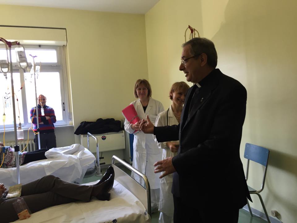 Infine, Mons. Bresciani ha voluto incontrare tutti i pazienti dell’ospedale, parlare e pregare ognuno di loro, pregare con ognuno di loro e lasciare qualche piccolo dono. E’ stato un momento intenso, autentico, cristiano.