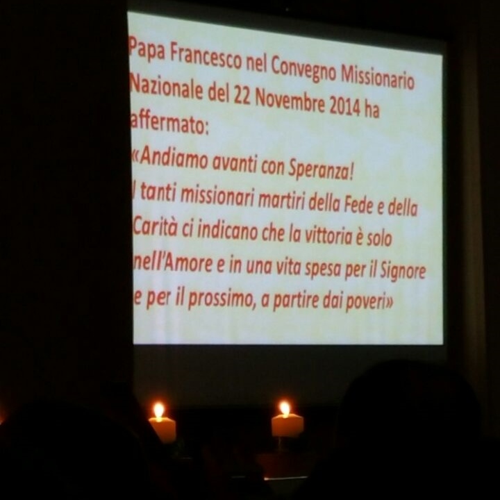 Il messaggio chiave dell’appuntamento della veglia di preghiera è stato indubbiamente l’importanza dell’esempio della “martirìa”, la testimonianza della forza della fede che, in fondo, riguarda ognuno di noi poiché una fede muta è una fede a metà, improduttiva, che non semina e che, dunque, non può raccogliere. Noi tutti siamo chiamati a farci testimoni, ogni giorno, di Cristo e del suo misericordioso amore con la nostra stessa vita e con il verbo, strumento principale di comunicazione. Ed oggi, purtroppo , l’antico binomio testimonianza – martirio non è più anacronistico: i cristiani sono tornati sotto l’occhio del ciclone e sono cacciati via soprattutto dal Medio Oriente, con sofferenze e soprusi. Ma la croce è, sempre e solo, un momento di passaggio, difficile, necessario, ma non definitivo. La croce, come la morte stessa, temuta dai più ma non dai coraggiosi missionari martirizzati, diventa la necessaria via che Gesù stesso ci ha insegnato salendo sul patibolo, un “fallimento” della nostra umanità che però sfocia nel ricongiungimento eterno con il Padre.