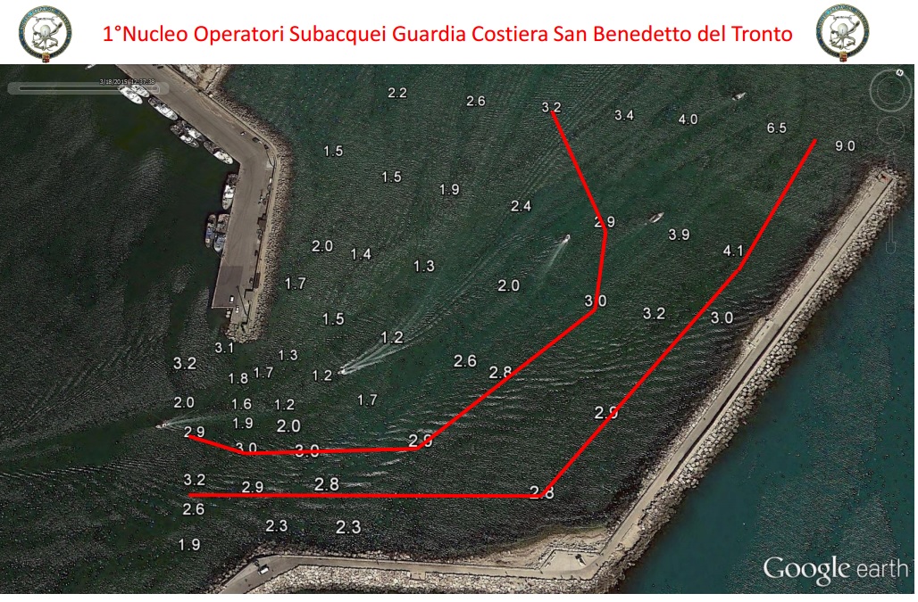 Visti i rilievi batimetrici, effettuati in data 20 e 28 mazo 2015 dal personale del dipendente Nucleo Sub di questo Comando;
