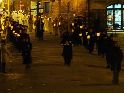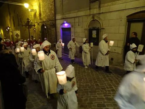 RIPATRANSONE – Venerdì 3 Aprile dalle ore 20:30 si è svolta la Solenne Processione del Cristo Morto che ha effettuato il tradizionale percorso partendo dal Duomo intitolato a San Gregorio Magno della città, passando poi per Piazza A. Condivi, Corso Vittorio Emanuele II e Garibaldi, Viali E. Cellini e G. Leopardi, Largo Speranza, per poi ricondursi attraverso Corso Vittorio Emanuele al Duomo.