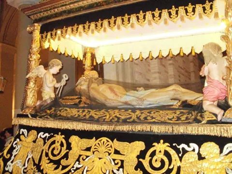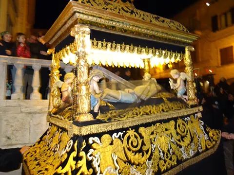 Esibita durante la Processione un’opera di rilievo, la bara eseguita nel 1910 su disegno di Guido Pezzini nella quale è adagiata la scultura del Cristo Morto eseguita nello stesso periodo da Giuseppe Manzo scultore leccese.