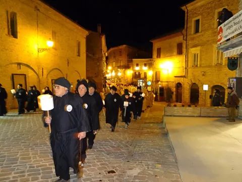 Snodandosi fra le vie, tutte adeguatamente illuminate, la Processione accompagnata dal Corpo Bandistico “Città di Ripatransone” è stata guidata da Don Gian Luca Rosati e ha visto sfilare 7 Confraternite ognuna con le insegne della penitenza.
