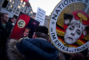 L’ininterrotta crisi ha generato in tutta Europa movimenti e partiti populisti che di Paese in Paese sono apparsi sotto forme diverse, operando con gradi differenti di successo. Provengono da sinistra e da destra, si oppongono all’establishment politico, sono contro l’Unione europea e gli immigrati. Indipendentemente dal fatto che si rendano riconoscibili per le loro ideologie di sinistra o di destra, lottano insieme su alcuni fronti, per esempio contro l’euro e contro Angela Merkel, ma a favore di Vladimir Putin.