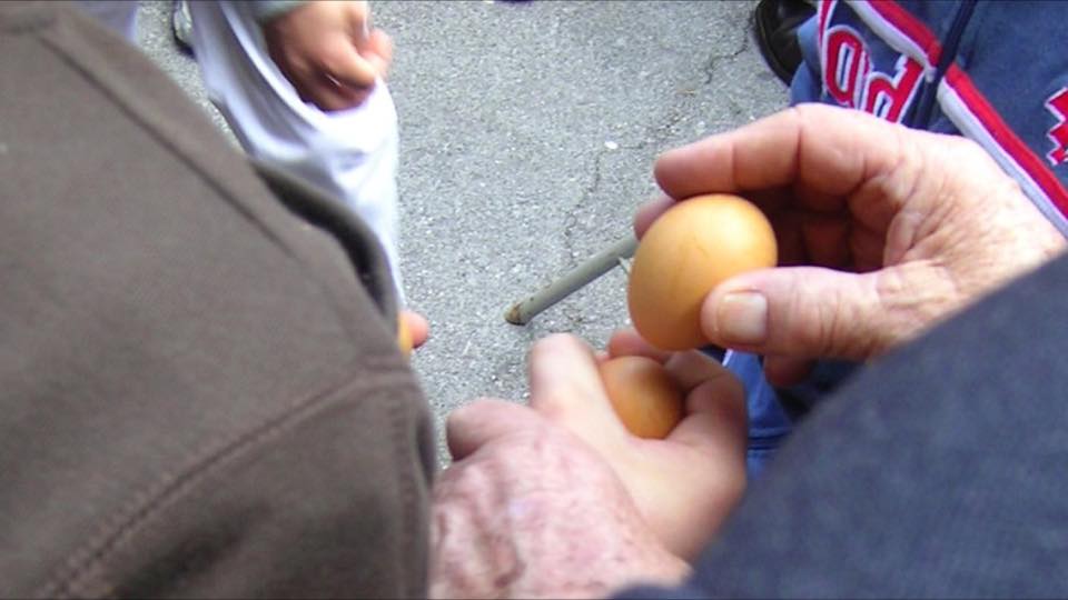 Secondo ben radicati costumi e tradizioni di un tempo, a Patrignone si ripete, dalla notte dei tempi, questo gioco tipico del Piceno. La gara si consuma con l’innegabile valore simbolico e pasquale che hanno le ‘armi’ di questi tornei: vere uova sode e colorate, delicatamente ‘picchiate’ contro quelle dell’avversario. Il guscio che si romperà per primo decreterà il vincitore, che acquisirà l’uovo rotto e continuerà sfidando il vicino. Gli anziani, più esperti, insegnano ai giovani come riconoscere al tatto le uova più robuste, che faranno guadagnare un buon bottino.