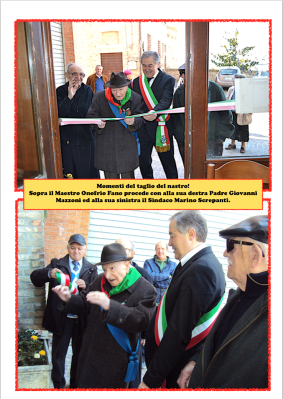 Il Maestro Fano affiancato dal sindaco Marino Screpanti, da Padre Giovanni Mazzoni e dal Partigiano Luigi Franca ha tagliato il tradizionale nastro tricolore che ha sancito l’apertura al pubblico della mostra. Egli, chiudendo la cerimonia con un breve ma notevole discorso, ha sottolineando l’importanza dell’anniversario della Liberazione, del sacrificio e della lotta per il riscatto di tutto il popolo italiano. Ha citato un famoso motto partigiano che recita: “per chi c’era, per chi non c’era e per chi era contro..”, ed ha poi richiamato alla memoria i partigiani iscritti alla sezione! Ai convenuti ha fatto presente che il lavoro di raccolta del materiale è stato fatto per lasciare una testimonianza storica ai cittadini montelparesi, un patrimonio di conoscenza da rispettare e custodire, dando infine appuntamento, nello stesso luogo, il prossimo 24 maggio per commemorare il centenario dell’entrata in Guerra dell’Italia (Prima Guerra Mondiale).