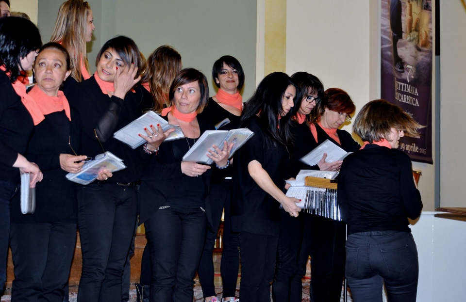 Un momento di festa e di condivisione di quello che è il servizio che i nostri Cori svolgono all’interno delle diverse realtà parrocchiali della nostra città e di quelle limitrofe. E il tema della Settimana Eucaristica di quest’anno , “Eucaristia: Fonte dell’Annuncio” bene ci introduce nella comprensione di questo servizio: attingendo Forza e Fede dall’Eucaristia, dalla Comunione con Gesù Pane di Vita, coloro che animano la Liturgia hanno il compito, attraverso la musica e il canto, di Annunciare la Parola del Signore, l’Amore di Dio per il Suo Popolo, la Gioia di Cristo Risorto. E’ un Dono Grande, di cui si può e si deve essere orgogliosi, e le corali intervenute all’Incontro hanno mostrato di essere consapevoli di questo dono, pur restando nello spirito di umiltà, regalandoci una serata di bellissima musica, di festa e di gioia nella Lode a Gesù! Vogliamo ringraziare per questo tutti tutti coloro che hanno partecipato: San Giuseppe, San Benedetto Martire, Gran Madre di Dio, Santa Maria del Suffragio, SS Annunziata, Sacra Famiglia, San Filippo Neri, (presente anche con la corale‘Voci Liete’ ), San Gabriele di Villa Rosa, San Cipriano di Colonnella.