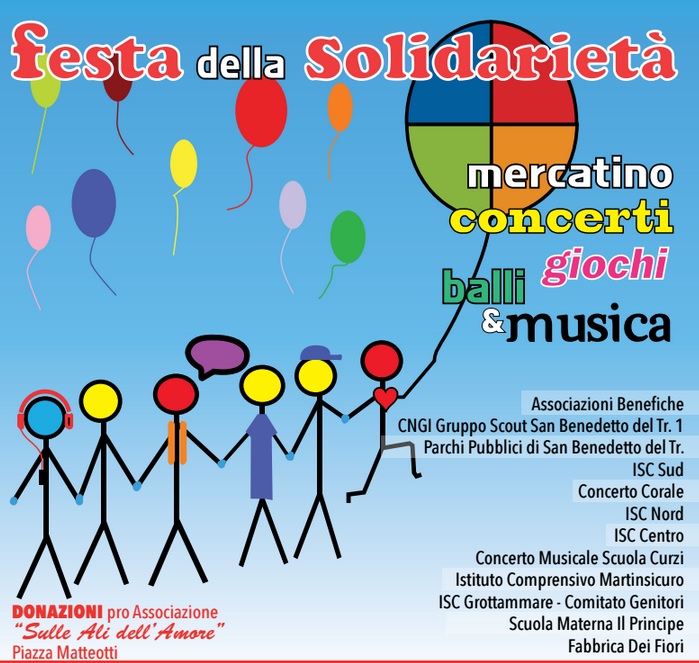 Domenica 19 la “Festa della Solidarietà” ci farà compagnia tutta la giornata in Piazza Matteotti ,via XX Settembre ,via Montebello e Viale Moretti. Mercatino, concerti, giochi e musica per far festa alla solidarietà. Tutto il ricavato sarà dato in beneficienza e la “Cultura del dare” sarà la protagonista di tutta la giornata.