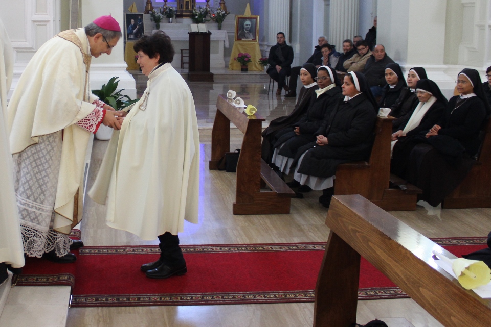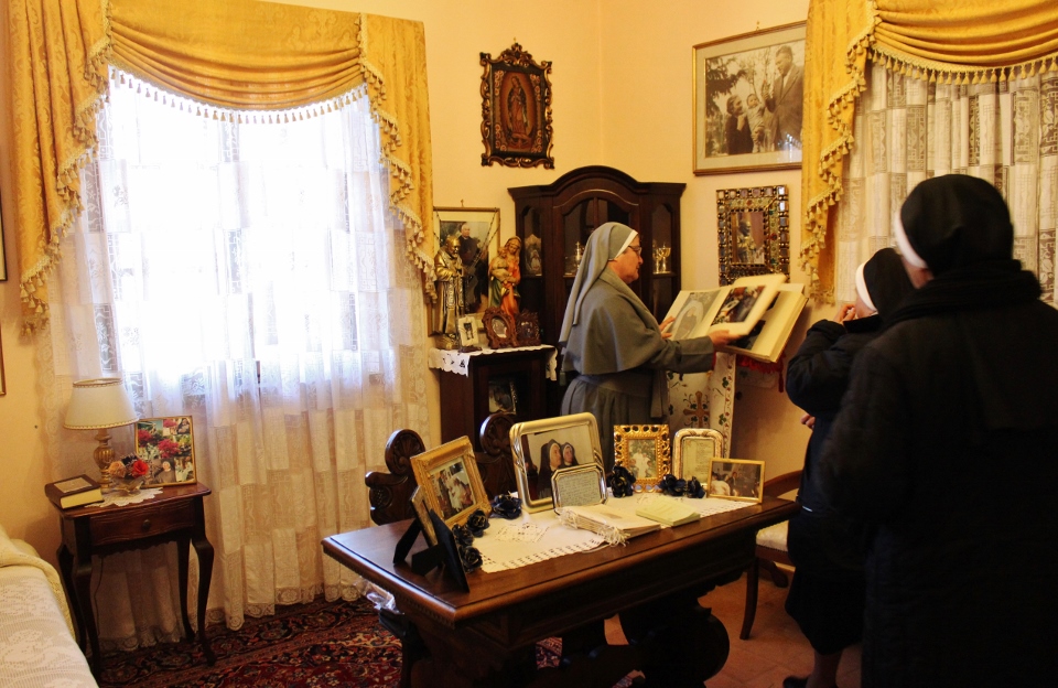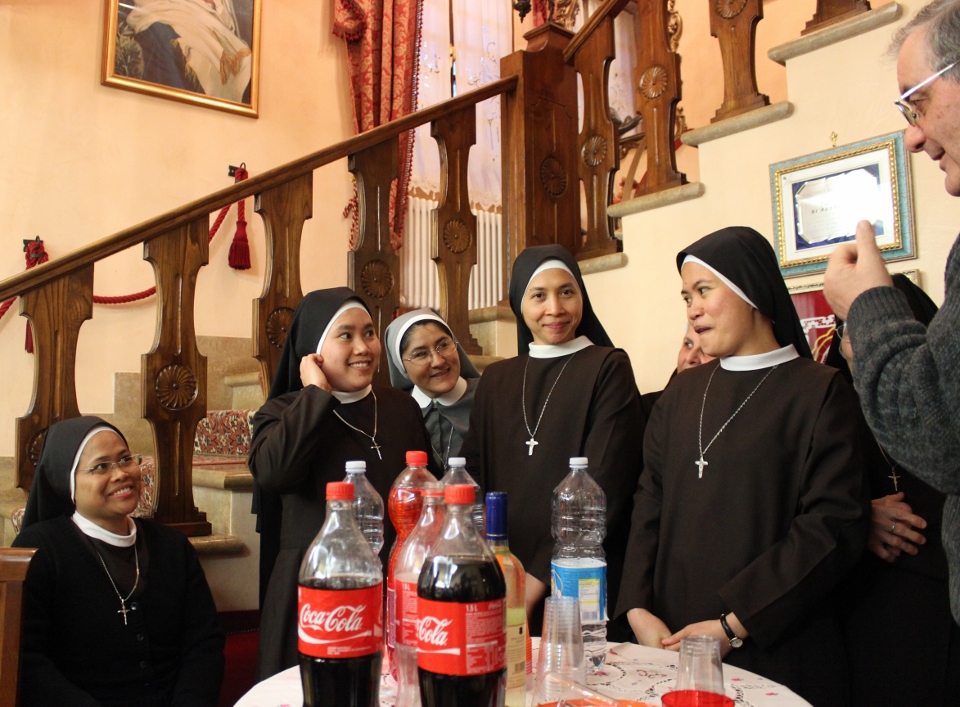 Un giorno è capitata nel mio paese Madre Suora Pallotta, la fondatrice del mio futuro ordine con due suore e venne a casa nostra. Era il 1956. La Madre, che aveva proprio uno sguardo che ti penetrava nell’anima e nel cuore, mi disse: “Tu ti fai suora?”. Io le risposi: “ Sì, Madre” (avevo 13 anni). Allora mi rispose: “Pensaci bene stanotte, poi domani mi dai la risposta”. Io non ci pensai per niente, perché il mio desiderio era veramente quello. Il giorno dopo mi incontra e dice: “Allora ci hai pensato?”; io le rispondo: “Sì, Madre” e lei: “Guarda che la vita religiosa è molto dura, poi il nostro carisma è quello dei bambini: bisogna lavarli, cambiargli il pannolino…”, insomma me l’aveva messa un po’ in grande. Io le dissi: “ Madre, quello che c’è da fare io indegnamente lo faccio” e lei: “Allora preparati perché vieni via con me”. Due giorni dopo sono partita e non mi sono mai pentita e ho avuto diverse prove nella vita: non mi è andato sempre tutto liscio, perché in convento c’è sempre chi ha il carattere un pochino diverso dal tuo, ma questo mi ha aiutata a crescere e a formarmi. Sono stata sempre vicino a lei, alla fondatrice. La Madre però mi voleva far studiare per dare qualcosa in più ai bambini, ma mi sembrava una perdita di tempo star fuori di casa e non lavorare; guardavo più al lavoro che allo studio. In seguito sono stata 13 anni con il vescovo Borromeo di Pesaro e poi sono tornata a stare vicino alla fondatrice. Sono stata sempre vicina a lei: l’ho accompagnata 13 volte in missione e oggi sono qua.