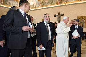 Altro tema caldo affrontato con Papa Francesco è la persecuzione vissuta dai cristiani in molte parti del mondo e, in particolare, in Medio Oriente. Il rapporto 2014 del Pew Research Center rivela che gli attacchi alle persone di fede sono compiuti di più contro i cristiani che contro qualsiasi altro gruppo religioso. Tra il 2006 e il 2012, i cristiani sono stati colpiti da persecuzioni o discriminazioni in 151 dei 193 Stati membri delle Nazioni Unite. Nella sua adizione alle Nazioni unite, l’Osservatore permanente della Santa Sede monsignor Bernardito Auza ha ricordato che sono tra 100 e 150 milioni i cristiani perseguitati nel mondo di oggi. Piena solidarietà hanno espresso i rabbini europei al Papa per questa situazione vissuta dai cristiani d’Oriente: “Deve essere condannata con forza ogni forma di persecuzione – incalza il rabbino Lewin – e soprattutto chiedere ai governi di agire per fermare questo massacro perché se si lascia fare, si rischia di arrivare al genocidio. Non amo fare comparazioni tra i genocidi. Ma non dobbiamo permettere che ci siano in atto simili persecuzioni. E noi che abbiamo vissuto questo tipo di dramma e di genocidio, dobbiamo essere i primi a condannare. Siamo testimoni e sappiamo dove può arrivare l’odio”.