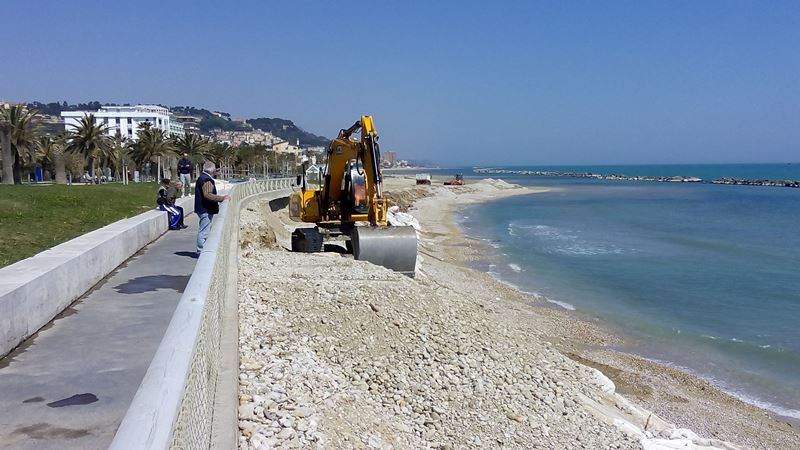 GROTTAMMARE – Sono in corso le opere per ripristinare la sicurezza della balconata a mare del lungomare Tesino nord, compromessa dall’erosione causata dalle ultime mareggiate invernali.