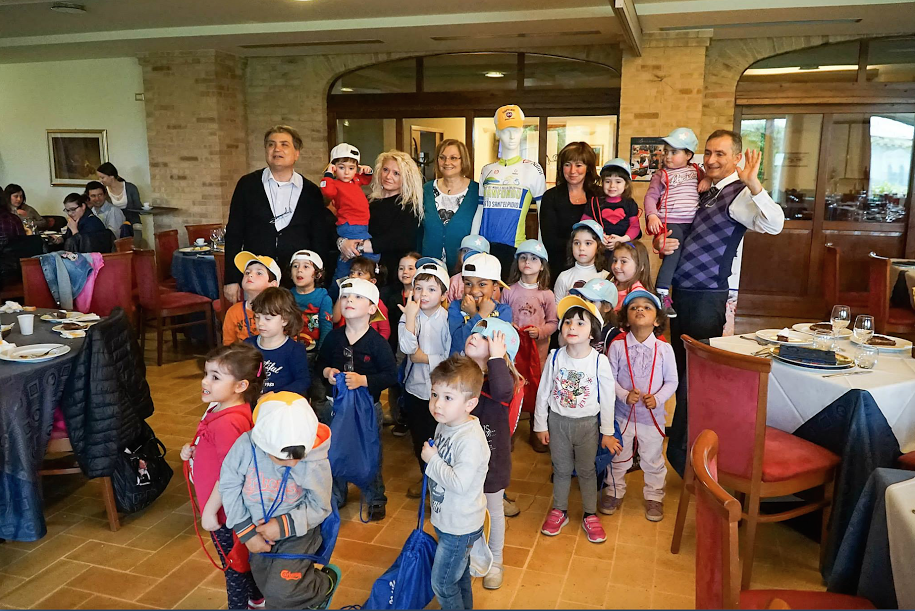 Giunge quindi il momento della premiazione dei vincitori del concorso Tirreno-Adriatico con una targa del Comune di Porto Sant’Elpidio. In dono ai bimbi uno zainetto contenente una maglietta, un cappellino e un libretto sulla storia di tre bimbi che scoprono l’emozione di andare in bicicletta!