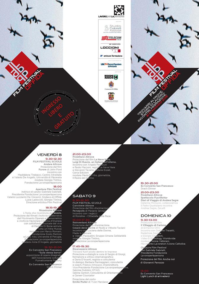 OFFIDA – Inizia venerdi 8 maggio la seconda edizione del Film Festival – Trovarsi Altrove. Storie di lavoro, incontri, migrazioni, organizzato dalla Fondazione Lavoroperlapersona, che si concluderà domenica 10 maggio a Offida.