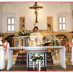 E’ stato il Priore-Parroco Padre Agostino Maiolini a introdurre, dal fondo della chiesa, i comunicandi della Parrocchia di San Michele Arcangelo di Montelparo.