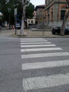 GROTTAMMARE – Anche questa volta, “l’assessorato all’incuria, alla diseducazione e alla disattenzione” (attivo in varie città d’Italia), ha lasciato un segno indelebile della propria intelligenza operativa: strisce pedonali con barriera architettonica finale a 10 metri dall’ingresso delle scuole. Il tutto, “condito” da una presenza di segnali stradali nel piazzale che vietano la presenza delle auto, regolarmente … presenti!