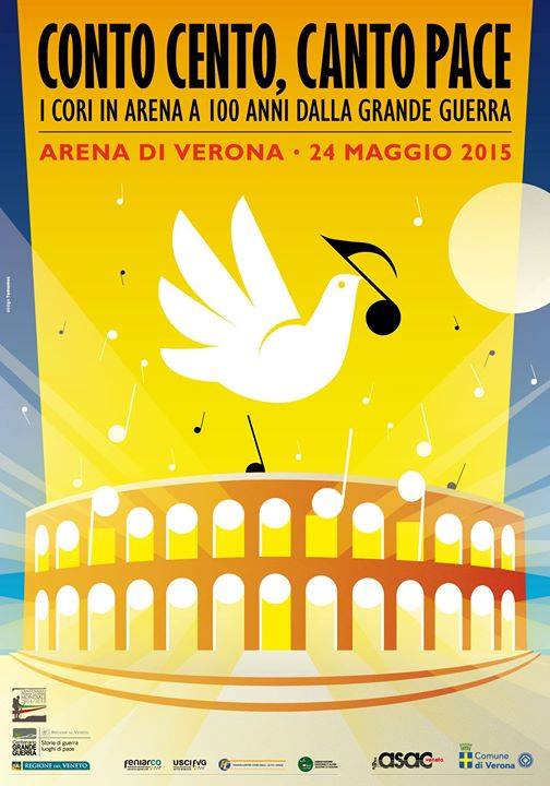 A cento anni dall’entrata in guerra dell’Italia nella prima guerra mondiale, il 24 maggio, l’Arena di Verona ospita una grande evento concertistico “Conto cento canto pace”. Un’iniziativa unica e straordinaria che vedrà il concerto di musica corale con il coinvolgimento di più di 200 cori provenienti da tutta Italia, coristi che riempiranno gli spalti dell’Arena. Tra i cori presenti anche la Corale Sisto V di Grottammare.