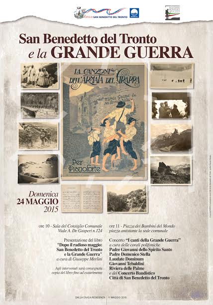Domenica 24 maggio, in occasione della ricorrenza dei 100 anni dall’entrata in guerra dell’Italia, ci sarà in sala consiliare alle 10 la presentazione di una pubblicazione curata dall’Archivio Storico Comunale dal titolo “Dopo il radioso maggio: San Benedetto del Tronto e la Grande Guerra”. La pubblicazione, dedicata “ai 104 caduti sambenedettesi della Grande Guerra morti al fronte, nei mari, negli ospedali”, raccoglie storie, memorie, vicende e biografie di quanti furono testimoni della barbarie della Guerra. Agli intervenuti sarà consegnata copia del libro fino ad esaurimento.