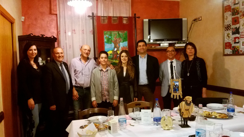 Alla cena erano presenti il Sindaco di Acquaviva Picena, Pierpaolo Rosetti, il Sindaco di Monteprandone, Stefano Stracci, l’Assessore Noci Valeria e l’Assessore Travaglini Marika del Comune di Monsampolo del Tronto, la dirigente scolastica dell’ISC A. De Carolis, Marina Marziale, la vice dirigente prof.ssa Nicoletta, la maestra Rosita Collina e la maestra Rita Bartolomei, responsabile del progetto Palio dei Bambini. Durante la cena il presidente dell’ass. Palio del Duca, Nello Gaetani, ha presentato il drappo del Palio dei Bambini che si terrà sabato 30 maggio presso piazza del Forte. Il drappo 2015 è stato disegnato dall’alunno Niccolò Scarponi, classe III media, presente alla cena con il padre Marco Scarponi e l’insegnante di disegno che lo ha seguito, prof. Luigi Neroni. Niccolò ha spiegato con queste parole il disegno del Palio che ha eseguito:” Ho scelto come sfondo, la vista del borgo di Acquaviva dalla collina della chiesa di San Francesco, invece della Fortezza, per dare una certa originalità al disegno. Al centro ho voluto mettere un albero di quercia con gli stemmi dei rioni, simbolo dell’antichità della storia di Acquaviva, con, in basso, due chiarine”.
