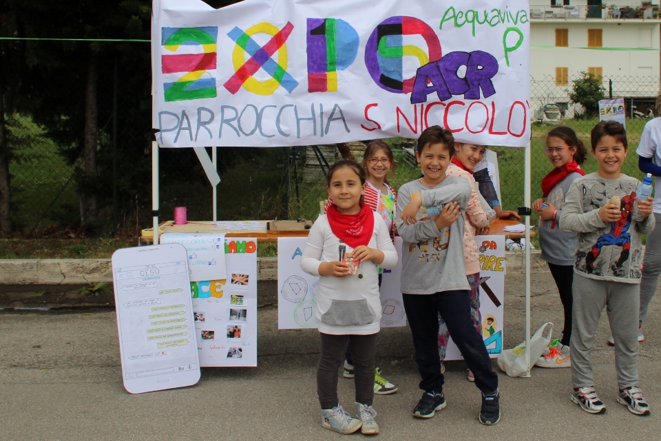 Nel primo pomeriggio, alle 14:30, c’è stata l’inaugurazione dell’EXPOACR 2015, ogni parrocchia ha allestito un proprio “padiglione” con tutti i lavori svolti durante il cammino ACR di quest’anno, cartelloni, striscioni, video, … un’occasione per condividere, confrontarsi e imparare cose nuove da altri, i partecipanti hanno girato per tutti gli stand per guardare e divertirsi con piccoli esperimenti preparati da ogni parrocchia, fare foto e conoscersi. Erano presenti, con un proprio stand, anche il settore Giovani AC, il settore Adulti AC con il MLAC, che ha invitato gli aderenti adulti e i genitori per un coffee break e qualche dolcetto, e il CSI (Comitato Sportivo Italiano) comitato provinciale di Ascoli.