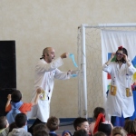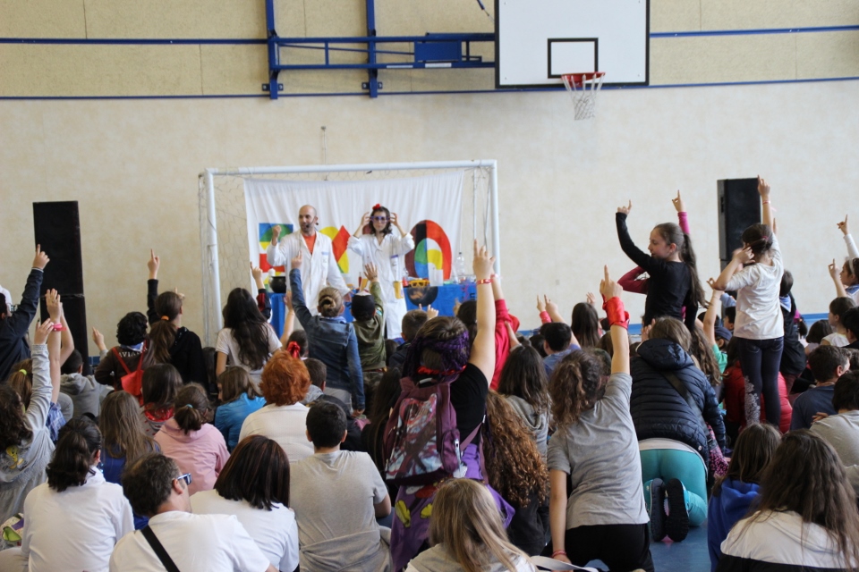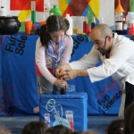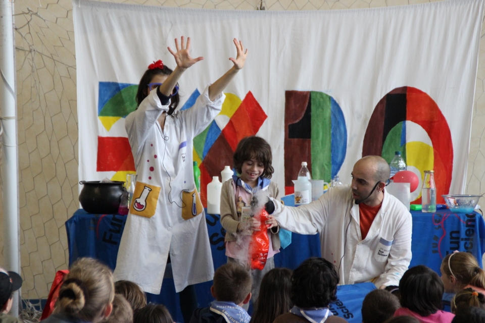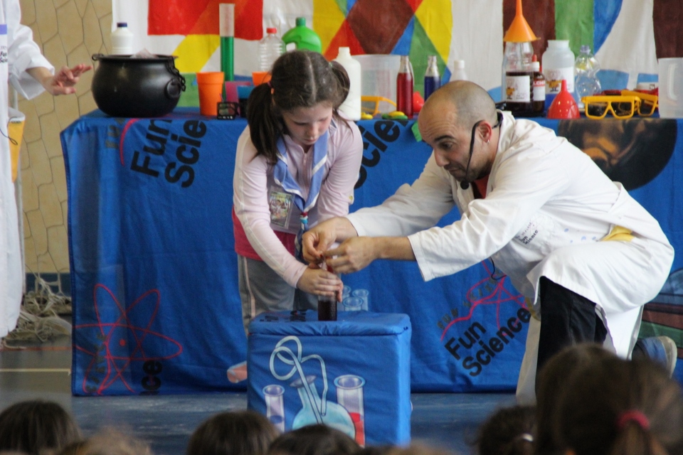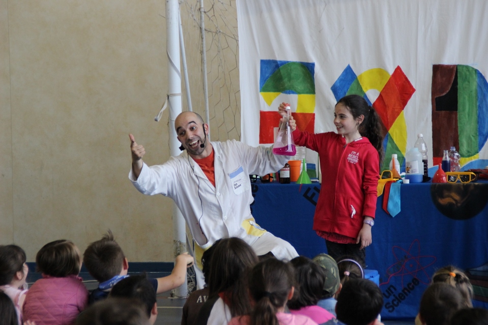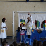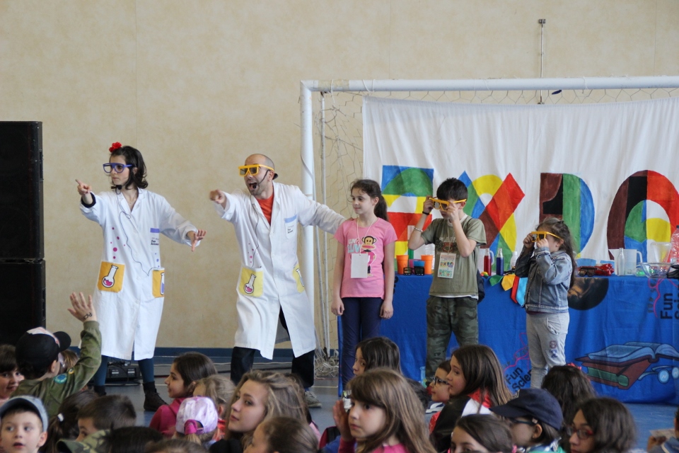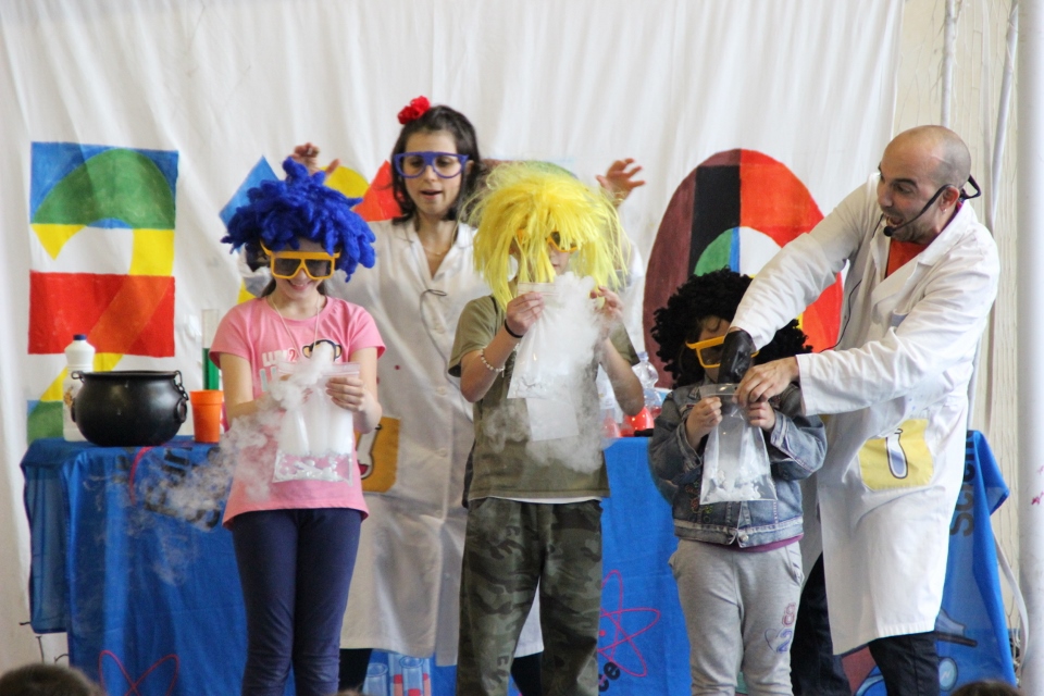Mentre l’EXPO era aperto, nella palestra vicina è iniziato lo spettacolo dei FUN SCIENCE, un’associazione culturale dell’Emilia Romagna che si propone di insegnare, attraverso un metodo innovativo e divertente, i principi della scienza; i bravissimi FUN SCIENCE hanno proposto una serie esperimenti in maniera divertente, coinvolgendo i bambini in prima persona: in molti hanno fatto a gara per fare i piccoli scienziati volontari!