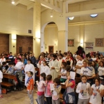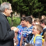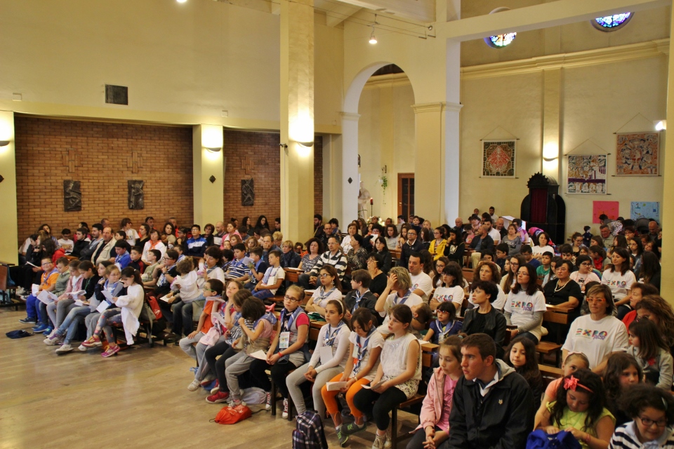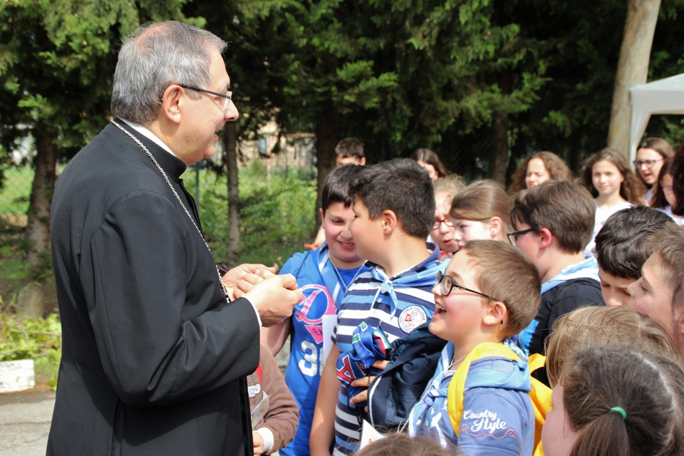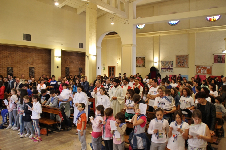 Alle 16:00 i partecipanti si sono avviati nella chiesa della SS Annunziata per la messa che è stata celebrata dal Vescovo Carlo. Durante l’omelia, Sua Eccellenza ha ricordato ai piccoli il significato della Pentecoste:”Che cosa opera lo Spirito Santo? Perché questo dono? Dio vuole rimediare al disastro che hanno compiuto gli uomini nell’antichità con la torre di Babele. Essi volevano fare a meno di Dio e costruire una torre alta per arrivare al cielo, ma la torre crollò; questo sta a simboleggiare il nostro orgoglio, il nostro voler fare da soli, se ognuno di noi si comportasse in questo modo, non ci si capirebbe più niente, e quando si fa senza Dio non si arriva in paradiso. Quindi, Gesù disse ‘manderò questo spirito che rimedierà a ciò‘ affinché gli uomini possano capirsi e ascoltarsi per stare insieme e costruire un modo diverso di stare insieme: non imparare a costruire una torre di Babele, ma imparare a stare bene insieme, a volerci bene in modo tale che non distruggiamo quello che facciamo. Oggi avete vissuto una bella giornata, se foste stati chiusi a casa tutto il giorno sareste stati così bene? No, la vera gioia, la vera felicità è stare bene insieme, volersi bene e tutto questo grazie al dono dello Spirito: se accogliamo questo dono facciamo sorridere il Signore”.
