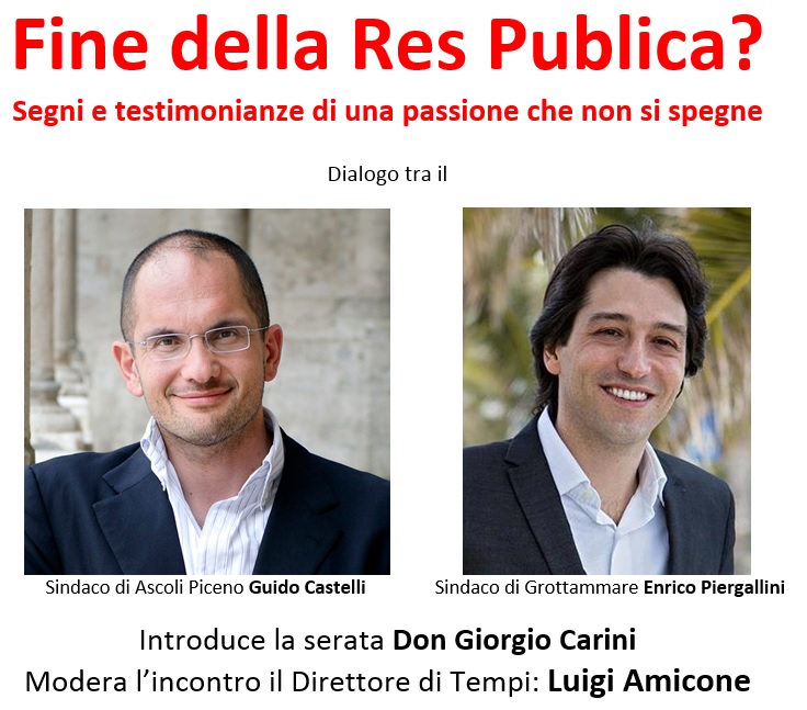 Dopo l’introduzione del parroco Don Giorgio Carini, si confronteranno intorno al tema il Sindaco di Ascoli Piceno Guido Castelli e Sindaco di Grottammare Enrico Piergallini.