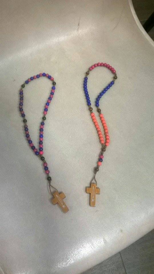 Qualche settimana prima di Pasqua il nostro Parroco Don Luis, ha assegnato un compito alquanto strano ai nostri ragazzi dei gruppi di catechesi, “La Creazione”(2° media) e “Il Dono della Vita”(1° media): realizzare dei rosari interamente fatti a mano per venderli nel giorno della Festa della nostra Parrocchia (svoltasi il 9 e 10 maggio scorsi) e trarne il ricavato a beneficio di tutti quei ragazzi dei paesi poveri che non possono pagarsi le spese per la loro Prima Comunione.
