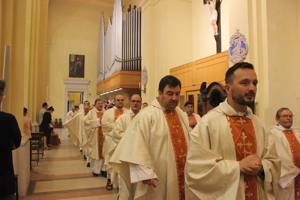 Insieme questa sera rendiamo grazie a Dio per il dono del sacerdozio e della Chiesa: attraverso i quali possiamo ascoltare la Parola di Dio e ricevere i sacramenti della salvezza che ci sostengono nel nostro cammino verso la patria celeste.