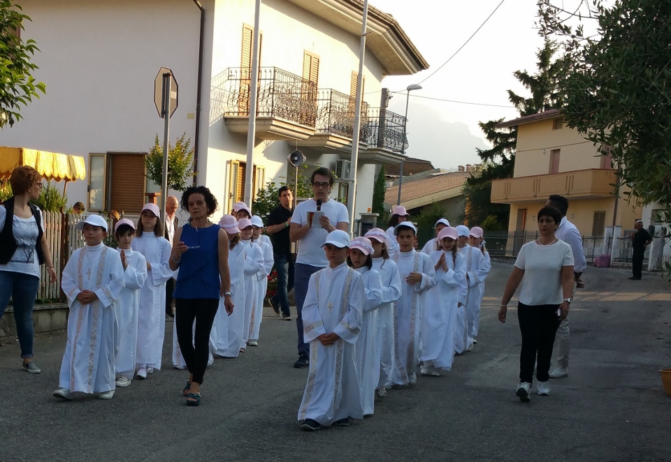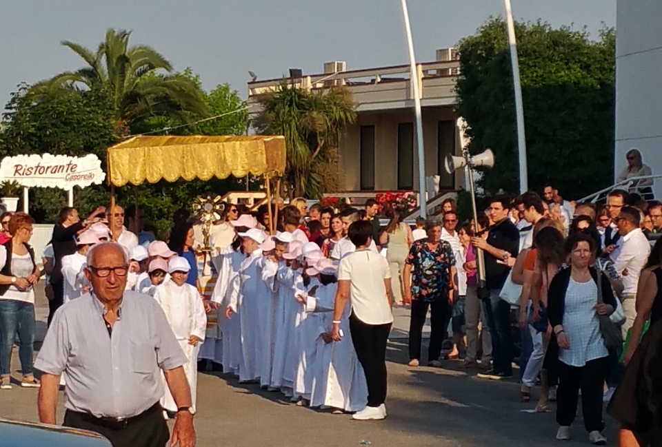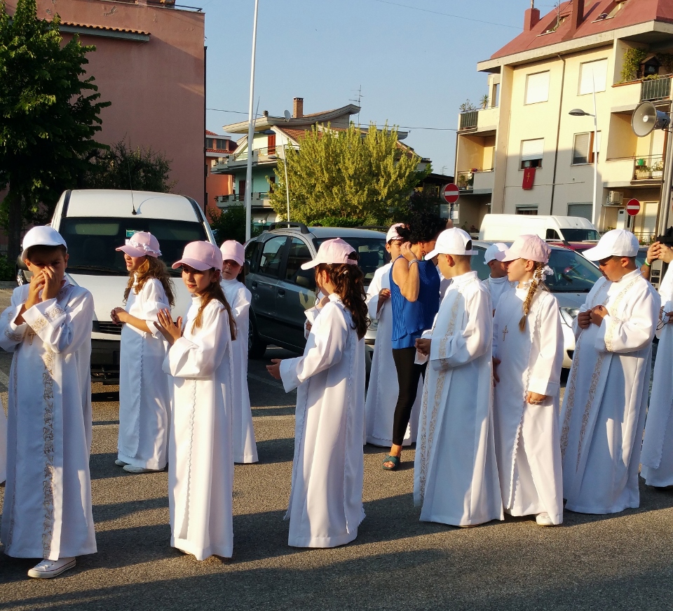 Alla processione, che si ripete ininterrottamente dal 1969 (anno di fondazione della parrocchia), hanno partecipato numerosi fedeli e naturalmente anche i 21 ragazzi che, al mattino, avevano ricevuto il sacramento della Prima Comunione, accompagnati da genitori e familiari.