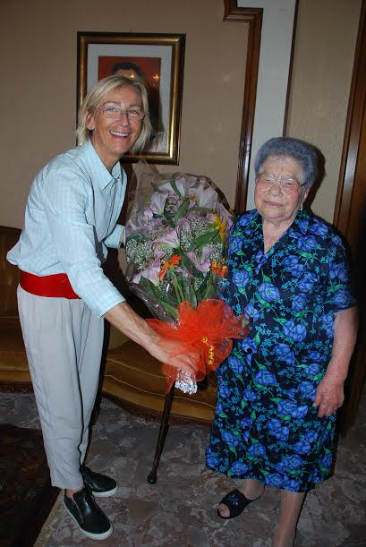 L’Amministrazione comunale, rappresentata dall’assessore alle politiche sociali Margherita Sorge, le ha regalato, come tradizione, un mazzo di fiori.