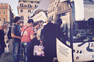 La “carezza” del Papa. Alle otto meno un quarto don Pietro chiama tutti in chiesa per una preghiera, mentre arrivano mons. Krajewski e il vescovo ausiliare monsignor Matteo Zuppi. Ci sono cattolici, ortodossi, musulmani e, dice il rettore, “persone un po’ più lontane, in ricerca”; a tutti dedica un applauso e tutti fa unire nella recita del Padre nostro e dell’Ave Maria che, assicura, “vuole bene a tutti”. La parola all’elemosiniere del Papa, ed è una sorta di “mandato”: “Vi porto la benedizione e la preghiera del Santo Padre, perché lui sa che voi andate a preparare la sua visita, e vi porto anche una piccola carezza da parte sua. Pregate per lui e per il vostro vescovo Matteo”. Poi mons. Krajewski distribuisce a tutti una piccola busta chiusa contenente un’immagine del Pontefice, una benedizione e 30 euro per le piccole spese. Usciamo per raggiungere largo Argentina dove ad aspettarci c’è un pullman a due piani. È visibilmente soddisfatto Carlo, 57 anni, che sulla porta della chiesa confida: “Qui mi sento come in famiglia. Vengo a mangiare ma anche a dare una mano”. Padre Pietro, aggiunge con aria quasi complice, “ci ha comperato le sigarette e se ci comporteremo bene ci offrirà anche una birretta”. Già, perché il rettore, concludendo la preghiera ha raccomandato a tutti: “Cercate di andare d’accordo in questi due giorni”.
