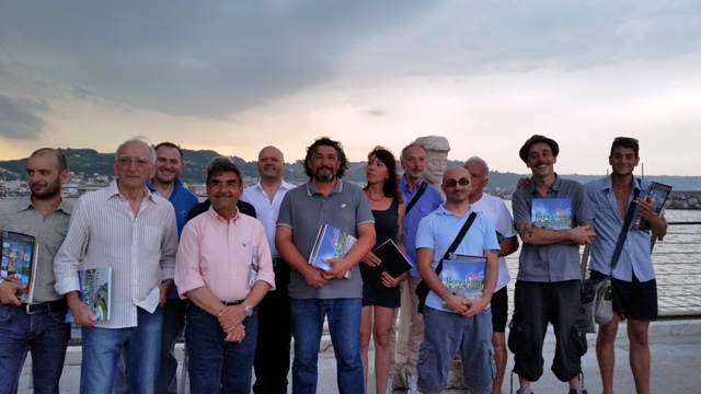 Il prof. Cocchiaro, architetto, residente negli Stati uniti in California, fondatore del MAM, ossia “Museo d’Arte sul Mare” (www.mamsbt.it), insieme all’altra “pietra miliare” di SculturaViva, ossia all’artista Giuseppe Straccia ( detto Peppino Straccia) già autore del presepe sommerso sempre sotto gli scogli del molo, ha radunato quattro pittori e quattro scultori per dar vita al simposio 2015. Tra i pittori: “Orticanoodles”, Gio Pistone, Luca Flebo Tayebian; Tra gli scultori: Antonio De Marini, Pietro De Scisciolo, Donato Gentili, Bruno Pon. La conclusione il 13 giugno ha radunato appassionati ed estimatori ed era presente il sindaco Giovanni Gaspari e l’Assessore Sorge alla Cultura. Ogni artista ha spiegato le sue motivazioni, relative all’opera che resterà in dono alla città di San benedetto del Tronto, contribuendo all’allestimento del MAM. Altre opere degli artisti sono state esposte in Palazzina Azzurra ed un’estensione del simposio si sta svolgendo in queste ore presso il quartiere Agraria di porto d’Ascoli, dove il team dei “Orticanoodles” sta realizzando un grande murale dedicato al disegnatore sambenedettese scomparso Andrea Pazienza. Tra le curiosità: il veterano del gruppo è Bruno Pon, di Carrara, dove la tradizione del marmo è come il pane;